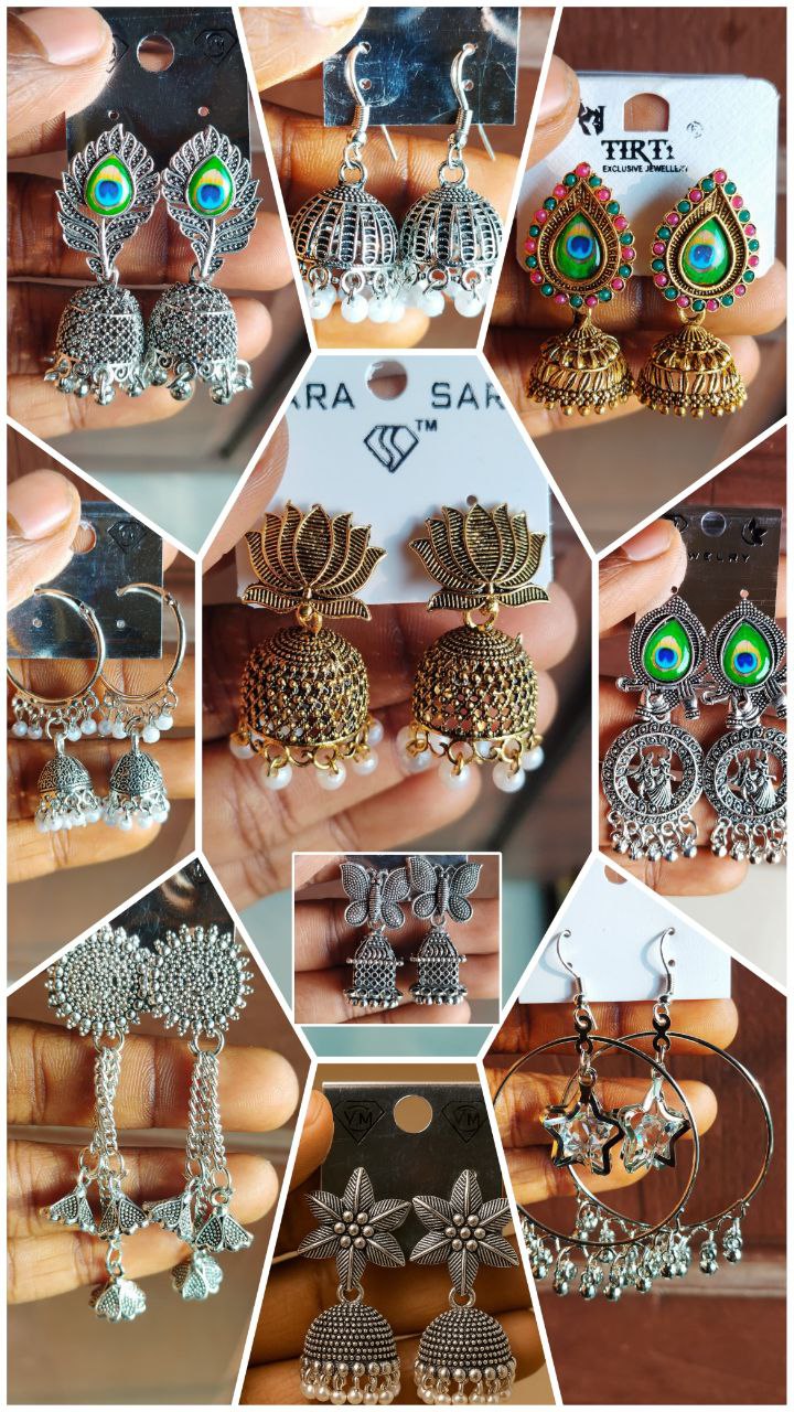 10 Pair Combo Oxidised Jhumka Earrings Set